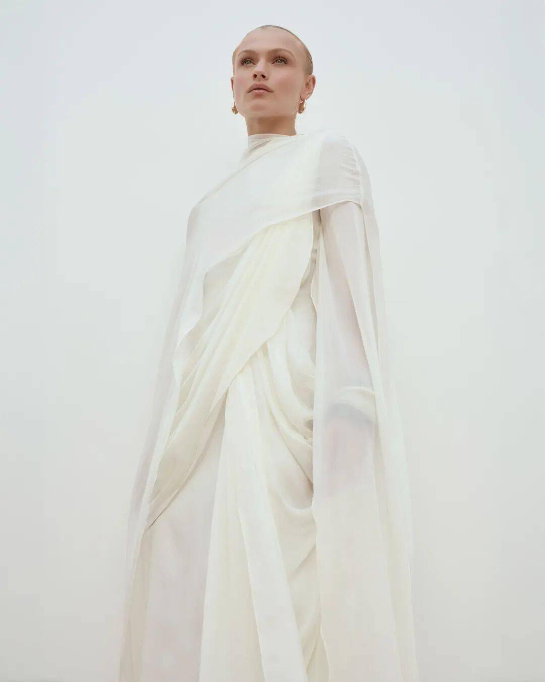 一直被视作审美标杆的 Elsa Hosk,即便早已拥有颜值与财富,仍在穿搭中不断精进,从撞色玩味到 effortless chic,再至如今充满灵气的女神风造型,可谓推动了艺术系贵妇风的普及。她的着装尤其强调轻盈流动感,善用水袖、披风、大裙摆等元素,让雕塑感轮廓从夏日延续至冬日,毫无臃肿之感。